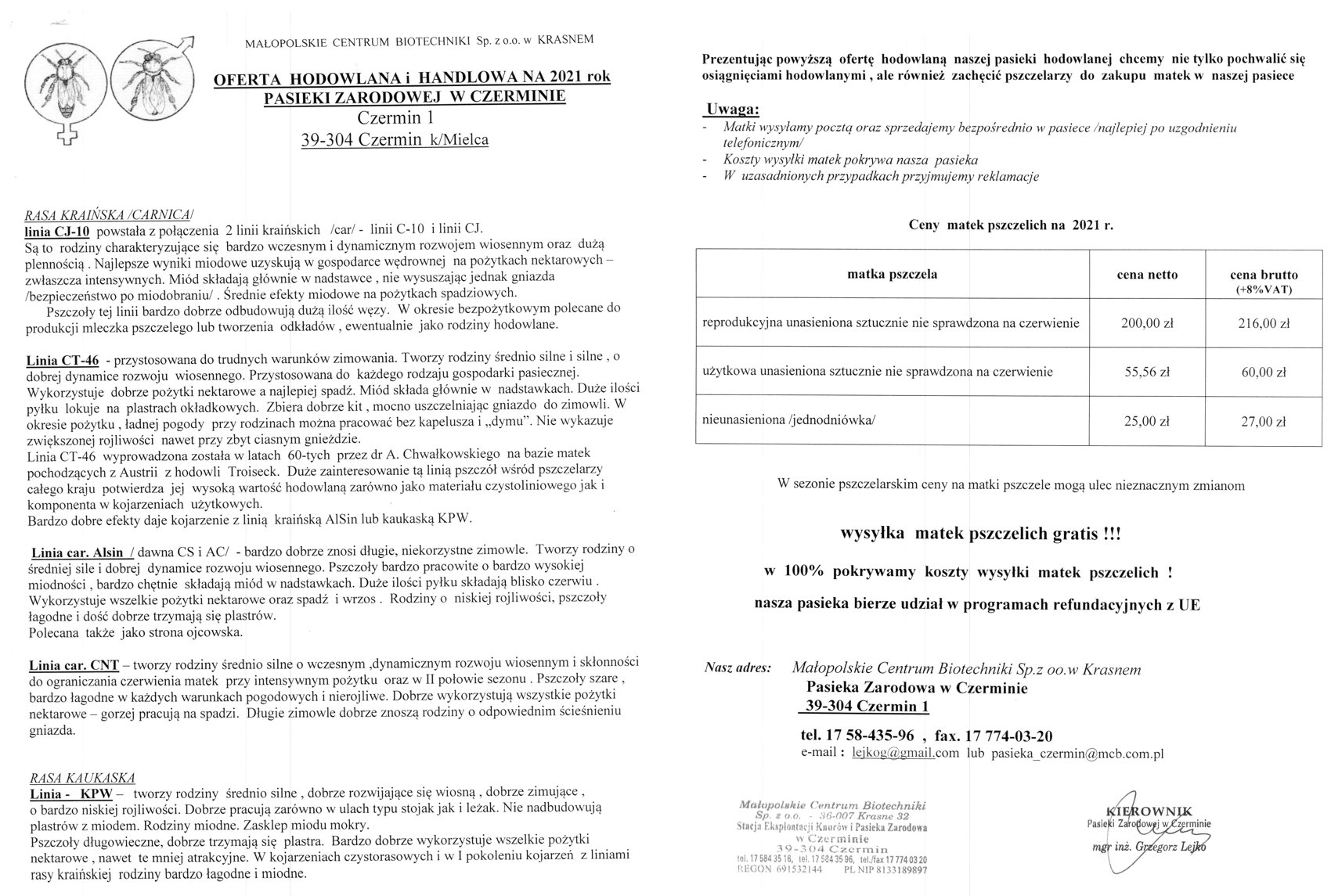 Zbiór ofert na matki i odkłady 2021 (ZIP 3.8 MB)